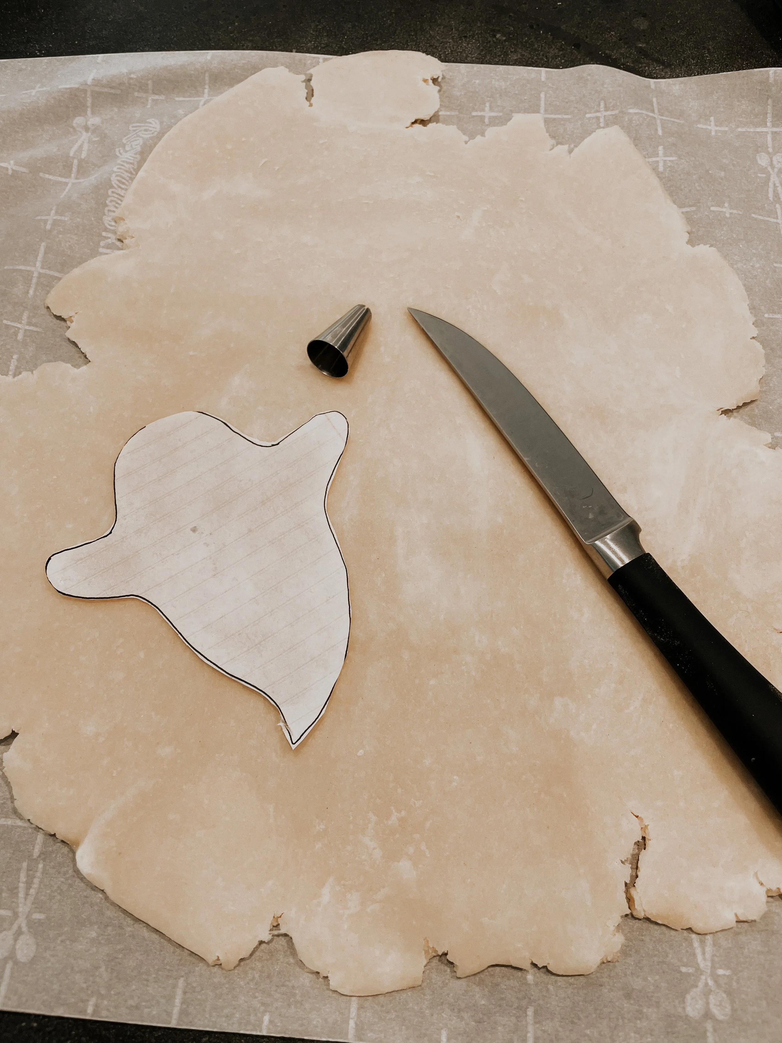 - Take your cookie cutter(or drawing) and cut the ghost shape.